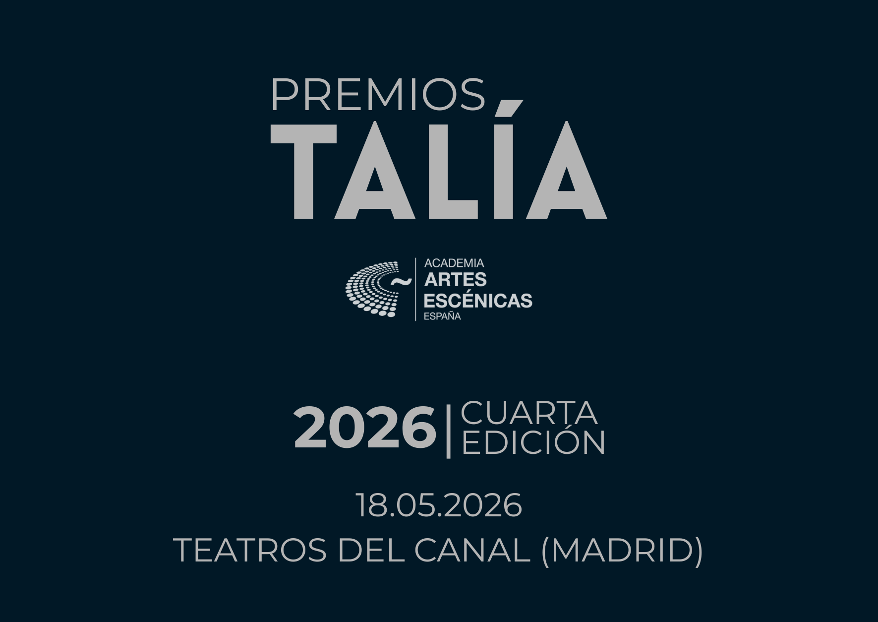 El 26 de diciembre de 2025 fue aprobado el reglamento de los Premios Talía 2026 | Cuarta Edición, que se celebrarán en la Sala Roja de los Teatros del Canal.